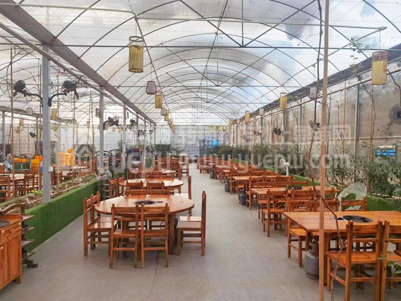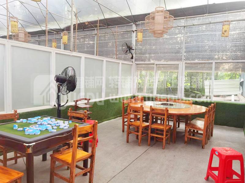 (2)本农庄目前是设备一有尽有,鱼塘约7亩,现已转租给其他人做黑皖钓鱼场,年租金8万,可以抵消整个场地的租金,拥有500人微信群,可以为餐厅引客;餐厅面积约800平,三个包房,顶上做了隔热棚,室内有水帘、风机,夏天可以控制温度在26度,无需空调,节能环保!加上种植大量葡萄藤,生态环境打造;停车场面积大,每个车位旁都有两颗果树,有桑葚、木瓜、芒果、百香果,休闲时刻采摘;还有家禽散养区,野炊露营基地,承接大型生日派对,工厂团体团建活动。周边工厂非常多,时常有活动。