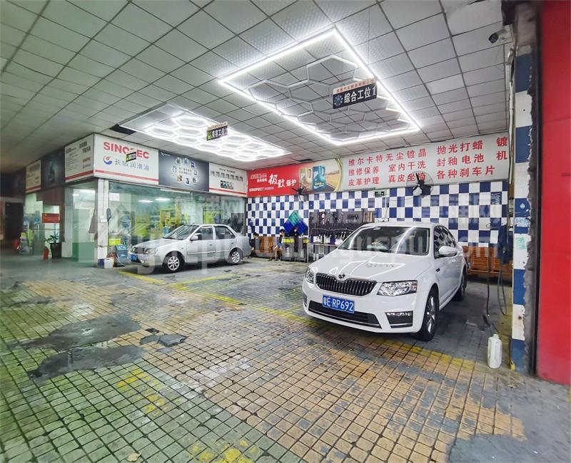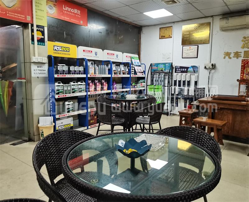 本店开间大,3卡铺位,店铺招牌广告位大,一目了然;面积共423平方,设维修区、美容区、洗车区、等候区,接待区 办公室。